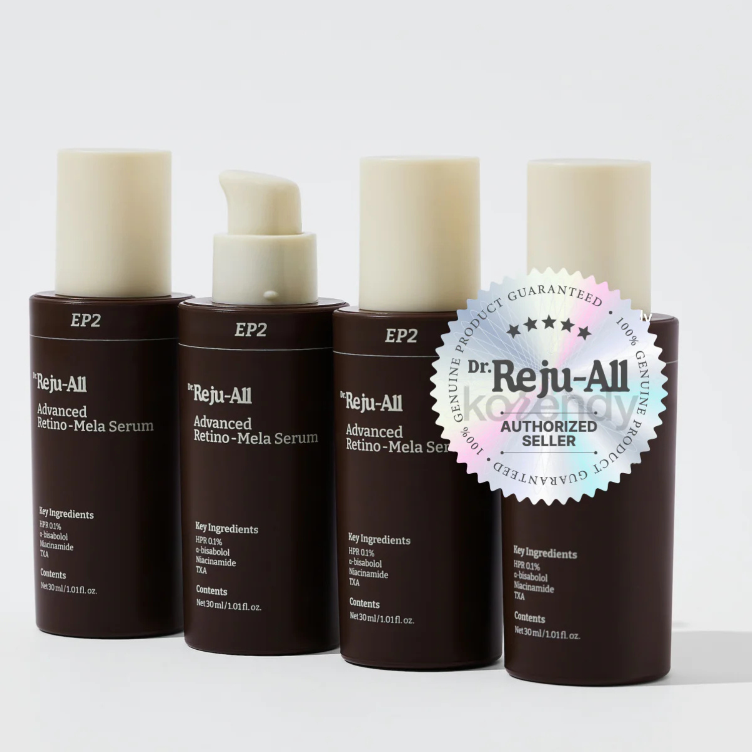 The Dr. Reju-All Advanced Retino-Mela Serum is a Korean skincare serum designed to target signs of aging and hyperpigmentation. It combines Hydroxypinacolone Retinoate (HPR), a gentle alternative to traditional retinol, with melanin-regulating ingredients to brighten skin tone, reduce dark spots, and improve texture without irritation. Its lightweight, fast-absorbing formula makes it suitable for all skin types, helping to promote smoother, more radiant skin.