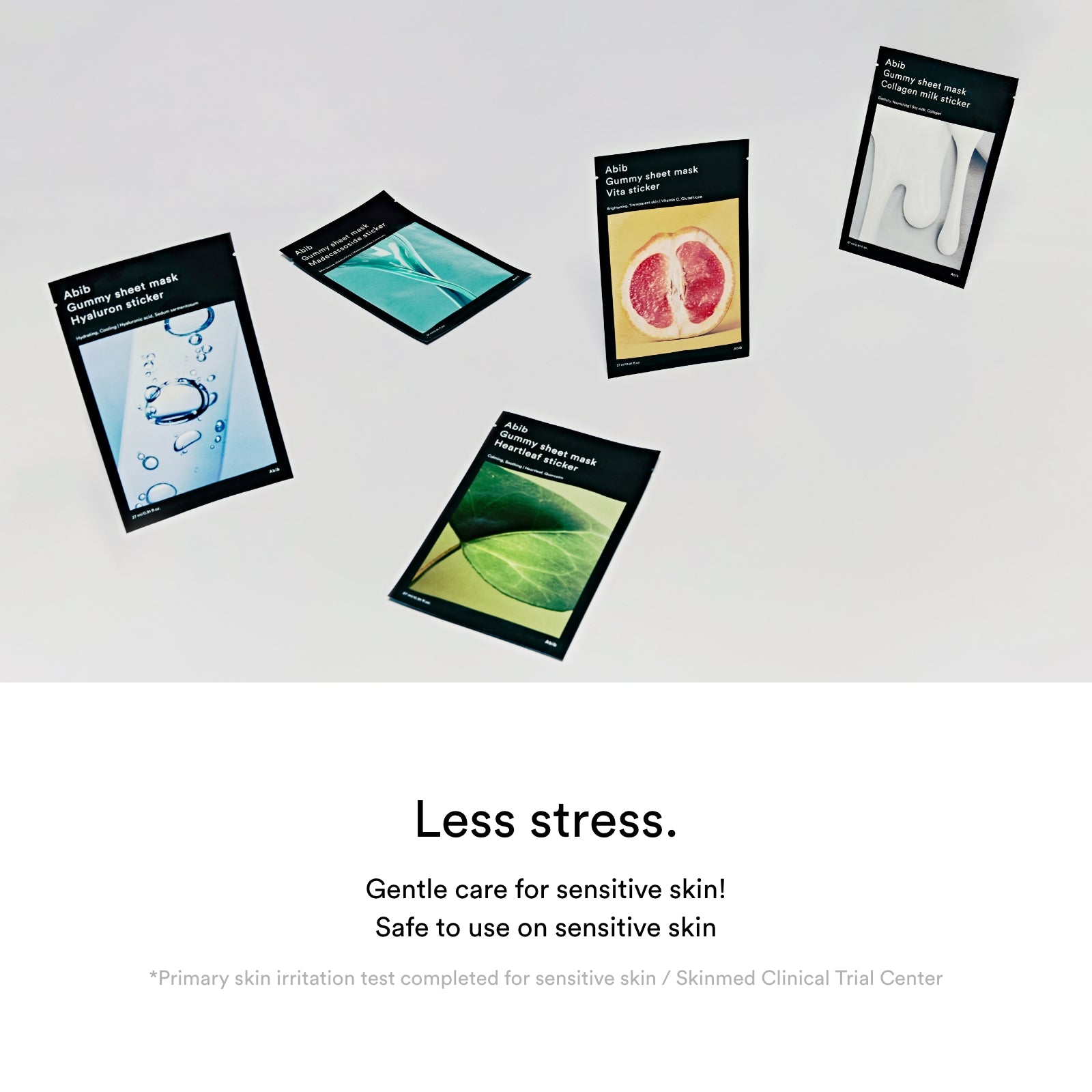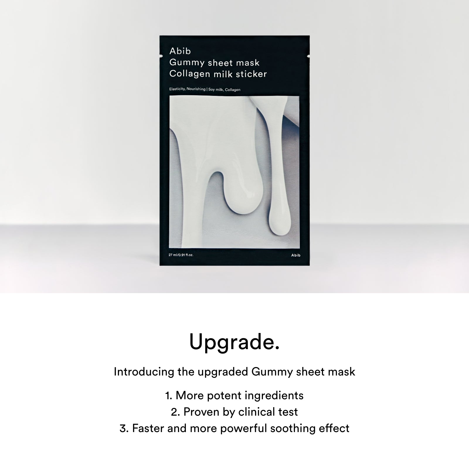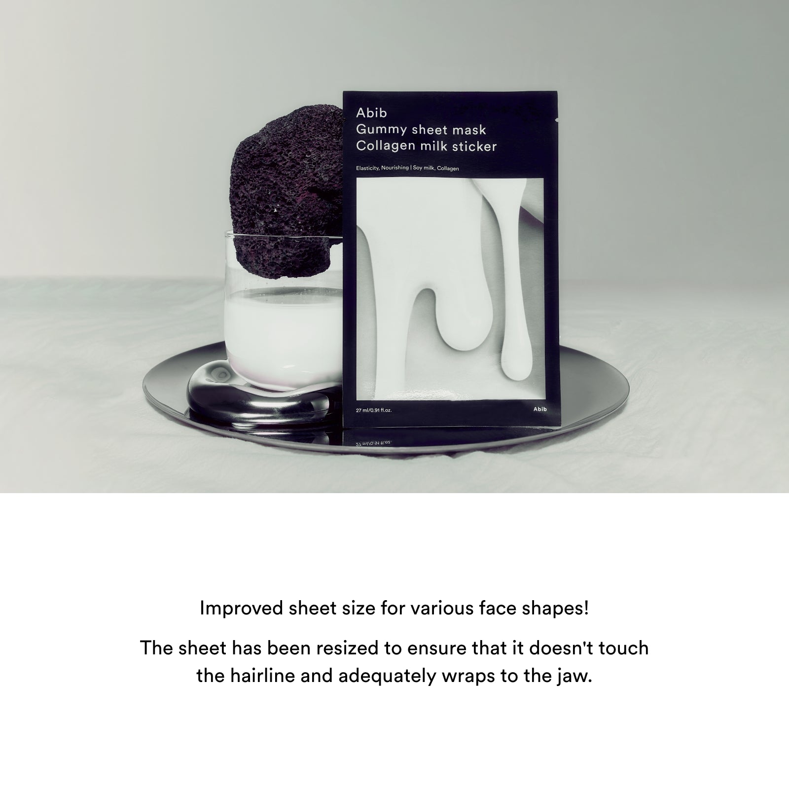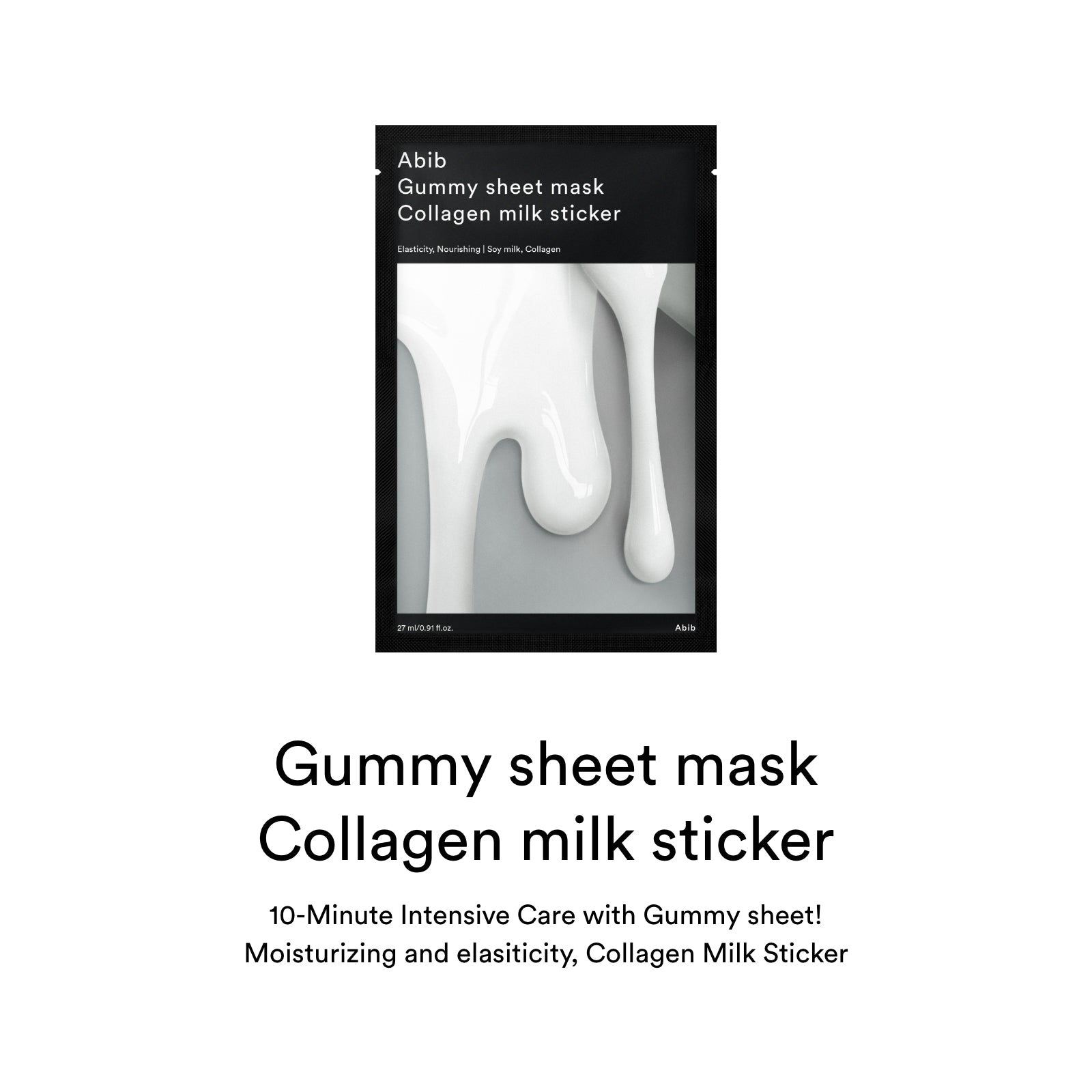 ABIB Gummy sheet mask collagen milk sticker for a perfect 10-min moisturization and elasticity care. Complete with more effective ingredients, clinical verifications, and more quick and powerful soothing effect. Completed skin elasticity improvement test. Results in improved skin elasticity and advanced skin suppleness after a single use.