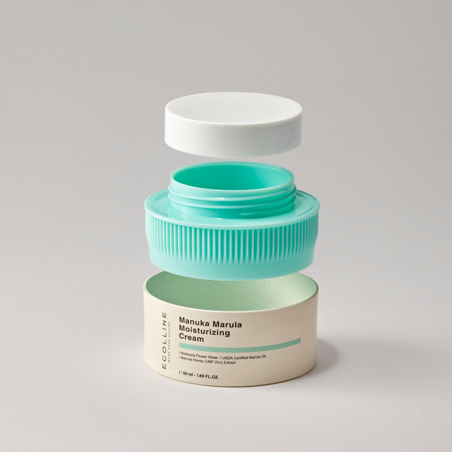 Ecolline Manuka Marula Moisturizing Cream is formulated to deliver deep hydration and gentle barrier repair through a nourishing blend of Manuka Honey UMF 20+, organic marula oil, and USDA-certified organic glycerin. This moisturizer provides antibacterial and antioxidant protection while restoring elasticity and long-lasting moisture. With its lightweight, non-greasy texture and perfume-free formula, it is safe for even the most sensitive skin. Packaged in recycled plastic and paper, it offers a sustainable choice that leaves the skin soft, resilient, and comfortably hydrated.